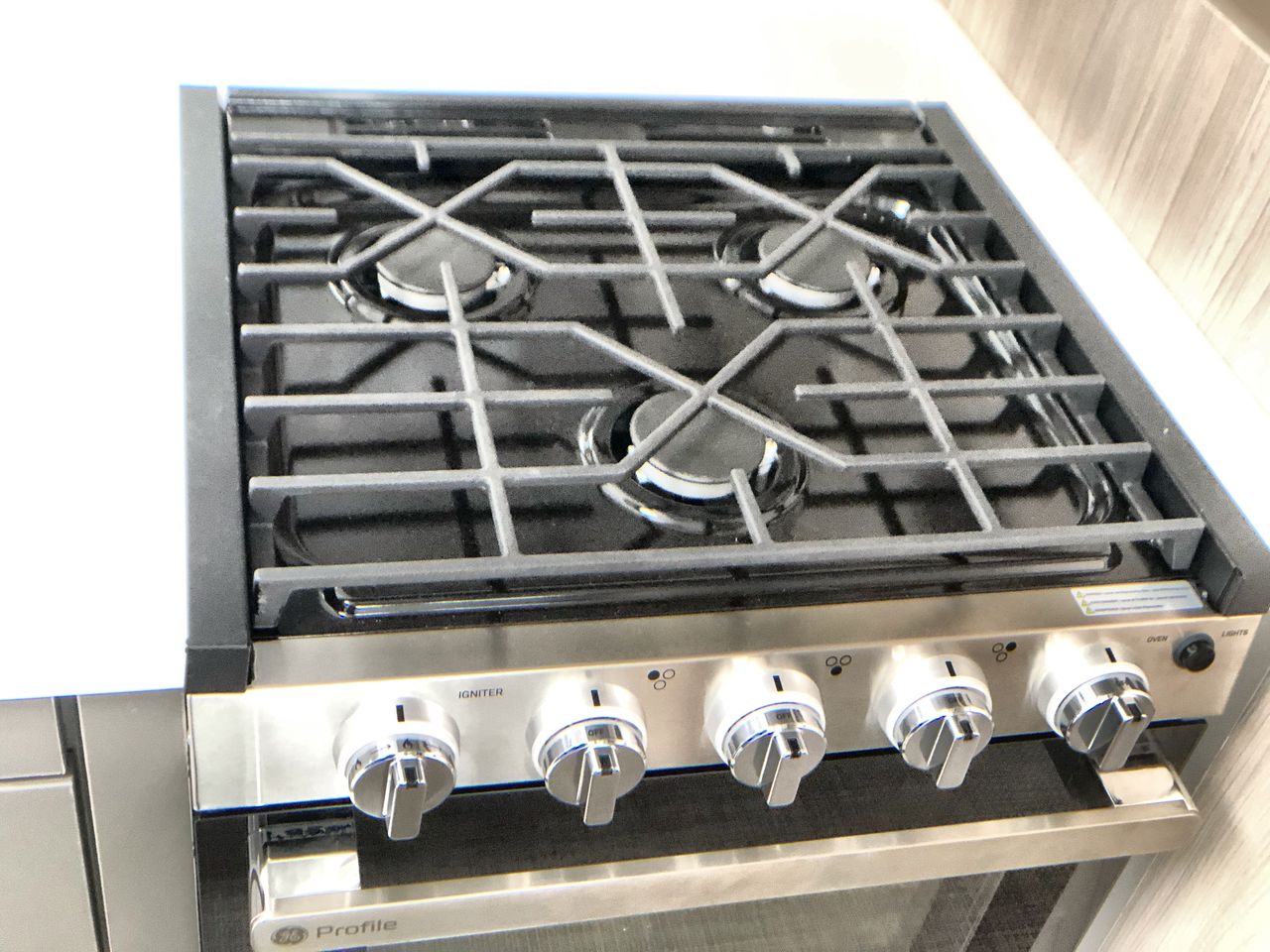 The kitchen is equipped with high-quality appliances, including a three-burner LP cooktop, oven, microwave, and a large refrigerator. Ample cabinet space ensures you have plenty of room to store all your cooking essentials, making meal preparation convenient whether you're at a campsite or on the road.